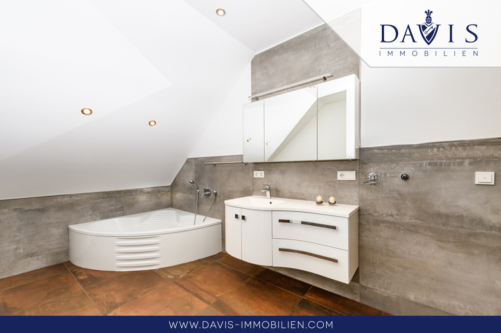 Wenn Sie noch mehr als diese riesige Wohnfläche für Ihre Familie beanspruchen möchten, gibt es im ersten Obergeschoss die 92,25m² große Wohnung, sodass sie dann insgesamt 217,83m² Wohnfläche haben. Diese zwei Zimmer Küche Bad Wohnung wurde erst im Januar 2022 frisch renoviert und steht auch schon zum Einzug bereit. Sollten Sie diese Wohnung nicht für sich selbst brauchen, so können Sie diese einfach vermieten und haben somit regelmäßig zusätzliches Einkommen. Wenn Sie allerdings alle Zimmer im Dachgeschoss nutzen möchten, stehen Ihnen drei weitere Schlafzimmer zur Verfügung. Eine Garage, mit einem elektrischen Tor, bietet viel Platz für Ihre wertvollen und wichtigen aufzubewahrenden Gegenstände und Schätze.