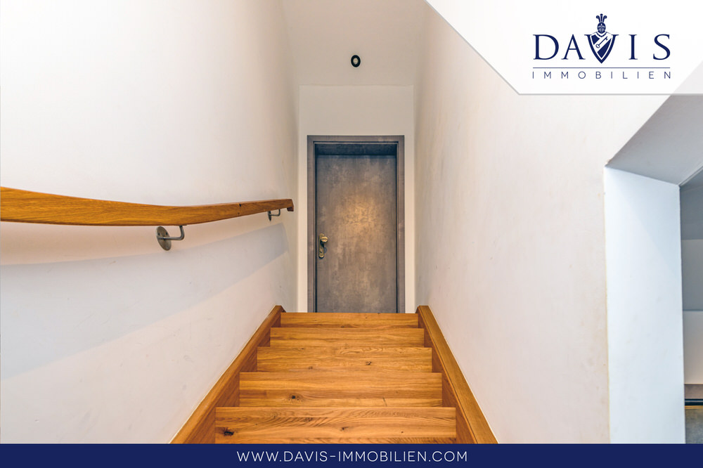 Die Klimaanlage im Erdgeschoss spendet im Sommer zusätzlich angenehme Kühle. Alle Fenster sind mit elektrischen Rollläden versehen. Wie auch alles andere ist die Küche im Erdgeschoss hochwertig und modern. Die Böden im Erdgeschoss sind mit Holz-Parkett und Fliesen verlegt.