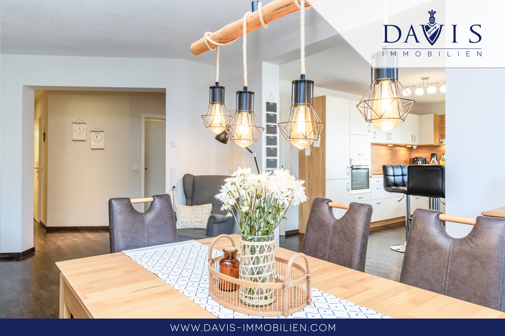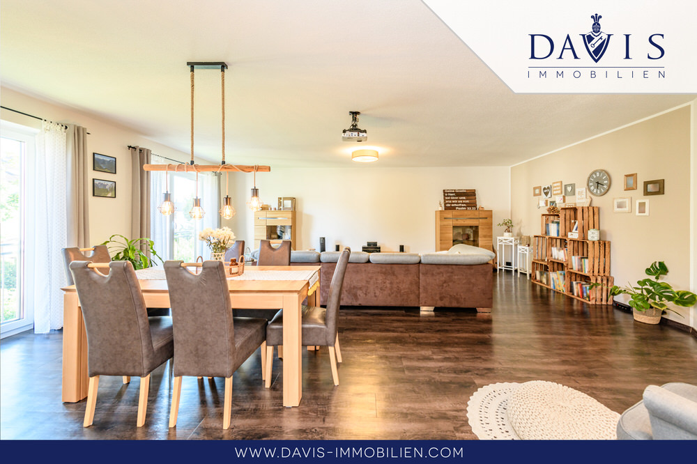 Die bodentiefen Fenster im Wohn- und Esszimmer fluten den gesamten Bereich mit viel Licht, so dass Sie bei jedem Wetter und zu jeder Jahreszeit ein gemütliches Ambiente genießen dürfen.
