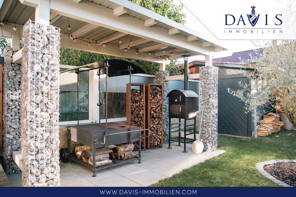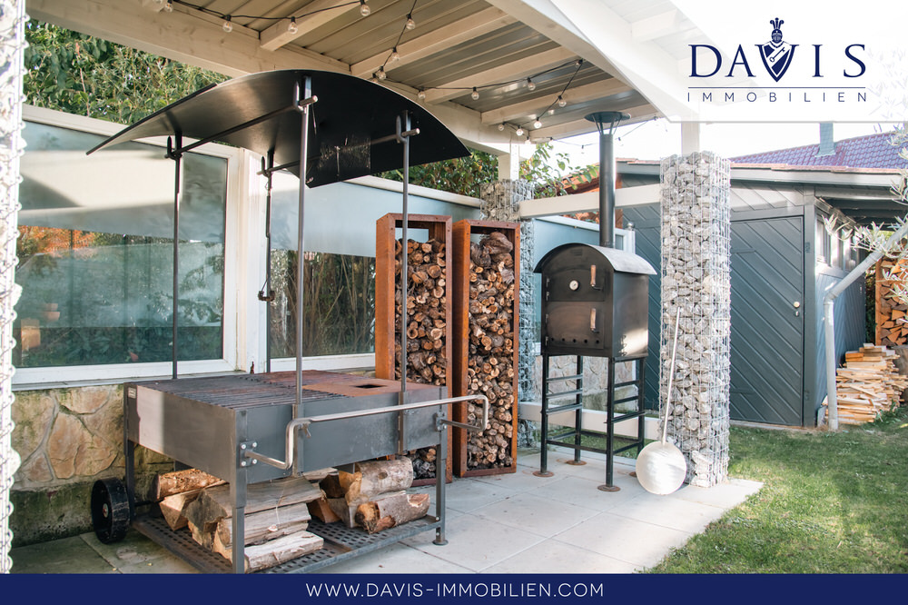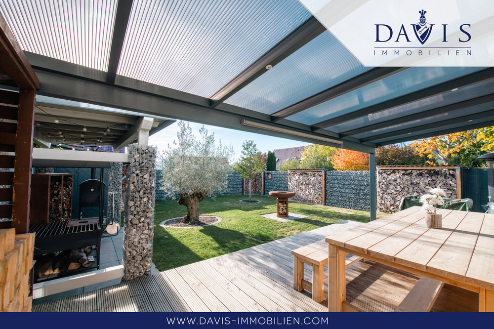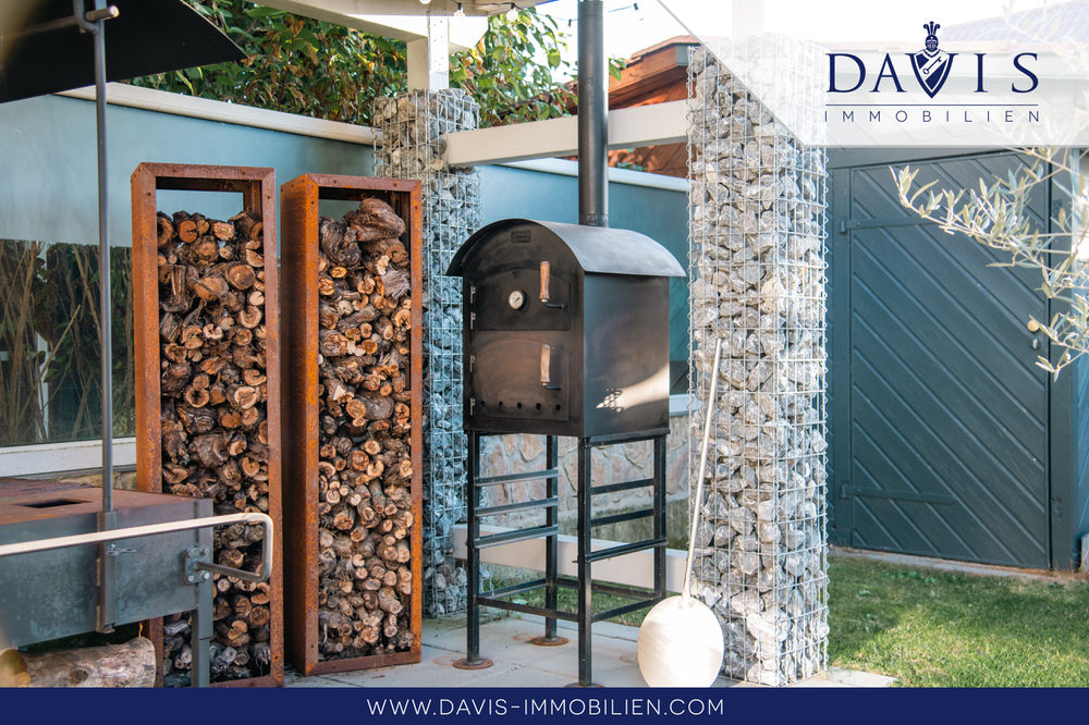 An schöne sonnige Tage wird es Sie in den großen Garten oder auf die überdachte Terrasse ziehen. Dort gibt es pflegeleichte Wiese und Platz zum Auslauf für Ihre kleinen Kinder, ohne dass sie die Möglichkeit haben wegzulaufen, da der Garten mit einem Naturzaun aus Stein und Brennholz komplett umzäunt ist. Besonders hochwertig wird der Garten durch einen seltenen ca. 300 Jahre alten Olivenbaum. Das Gartenhaus verleiht dem Garten noch etwas ganz Idyllisches. Selbst bei Regenwetter können Sie trotzdem Ihre Terrasse entspannt genießen oder sogar eine Grillparty veranstalten. Die Terrasse und der Grillplatz sind nämlich überdacht inkl. integrierter Beleuchtung.