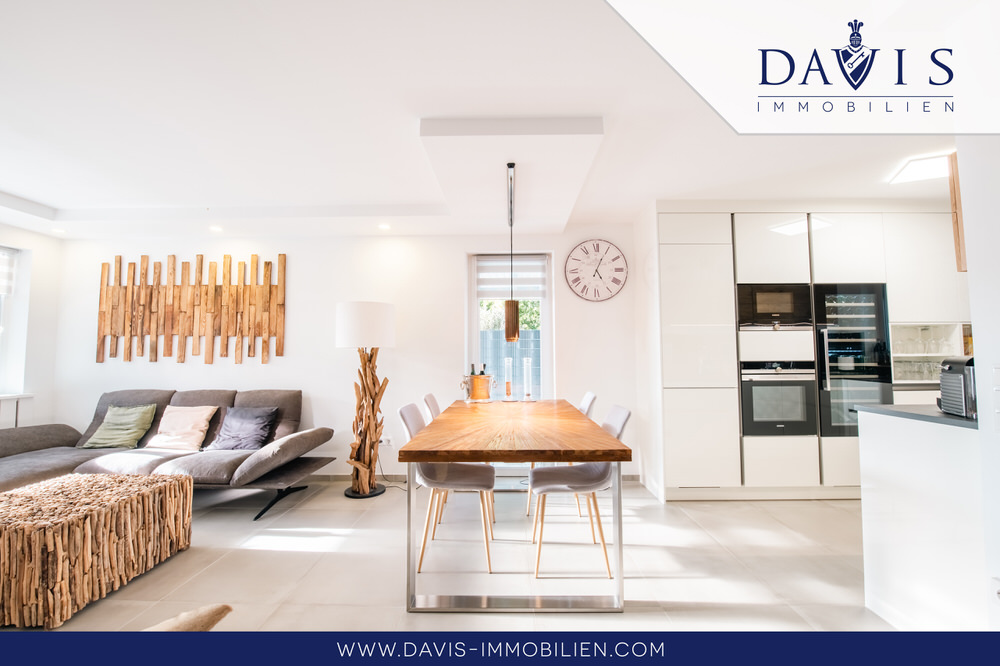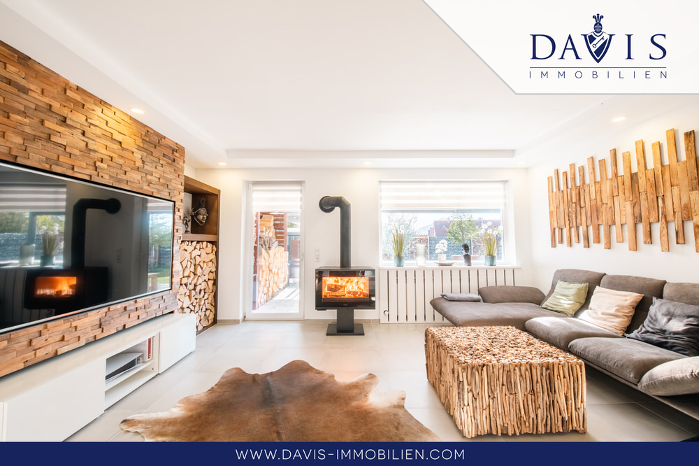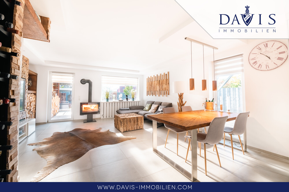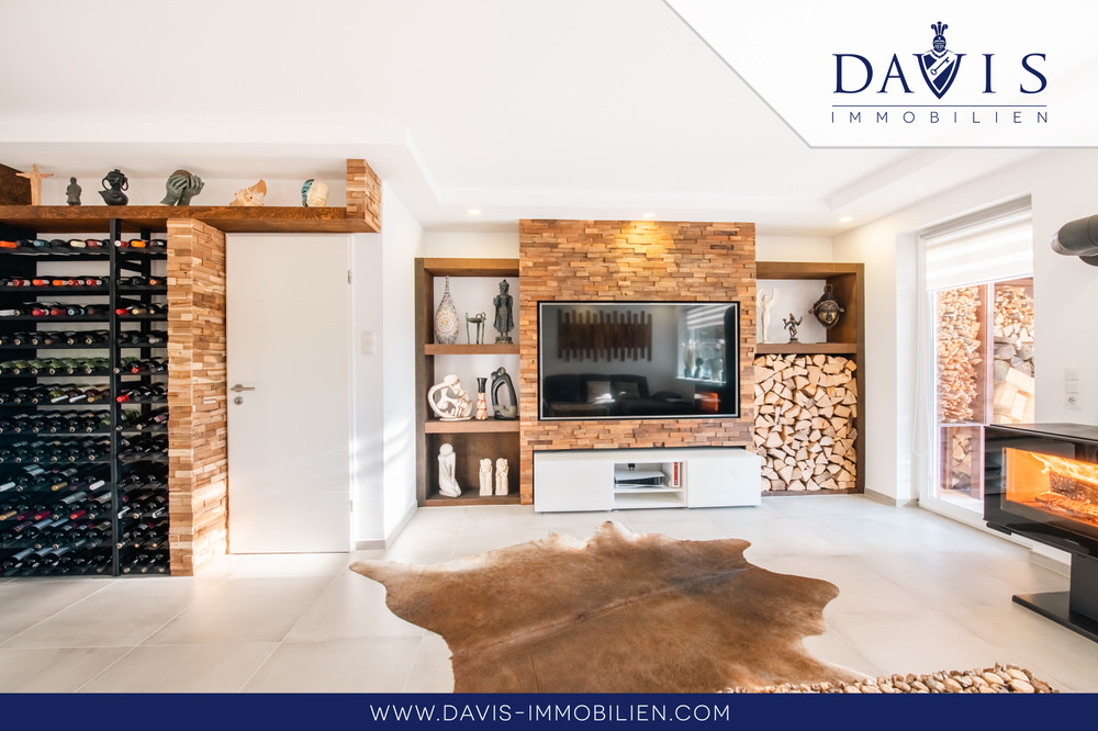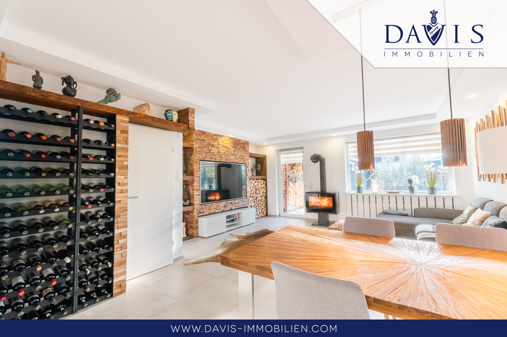 Das Interior wurde mit den schönsten und modernsten Tapeten, Farben, Wandverkleidungen und sonstigen Verzierungen renoviert, sodass alles geschmackvoll zueinander passt. Mit einem extra Weinkühlschrank für Getränke und Backöfen mit neuster Technologie ist die Küche Luxus pur. Wohnzimmer, Küche und Esszimmer sind ein großflächiger, heller und einladender Raum. Der Kamin im Wohnzimmer lädt dazu noch zu gemütlichen Abenden an kalten Wintertagen ein und trägt nicht unwesentlich zur Senkung der Energiekosten bei. Insgesamt verleiht der ganze Raum eine ganz besondere Gemütlichkeit wo man sich sehr gerne aufhält. Da hochmoderne 3-Fachverglaste Fenster verbaut sind, sind auch die Energiewerte hervorragend!